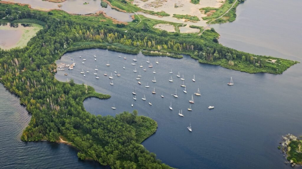 According to the CBC, the 3-mile-long peninsula was established as a breakwater to protect the city’s expanding port and shoreline. So in 1959, development involved dumping construction waste into the lake to form the perimeter while filling the inner areas with sand dredged from the Don River, per the Toronto Star.