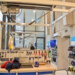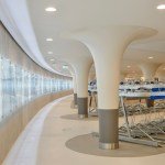 The garage features a sleek white design with curved columns and double-stacked bicycle rows, and artwork, including pieces by the late Lex Horn, adorn the walls. Both garages have direct access to Amsterdam’s Central Station, adding to the convenience for commuters. A series of electric ramps provide easy access to and from the garages for cyclists. The Stationsplein garage also features a shop where cyclists can buy accessories or get their bikes fixed.