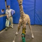 “We put on the giraffe pattern just to make it fun,” Mirzaian told the AP. “We do this with kids all the time. They get to pick super-heroes, or their favorite team and we imprint it on their bracing. So why not do it with a giraffe?”