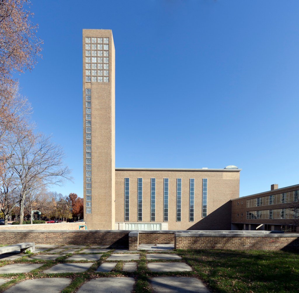 But out of all the locales in the U.S., why did designers choose Columbus? Back in 1942, Finnish-American architect Eliel Saarinen designed the city’s First Christian Church, one of the original contemporary churches in the country. Instead of following the Victorian style popular at the time, Saarinen constructed a rectangular box with mostly buff brick and limestone next to a 166-foot-high bell tower that still stands today.
