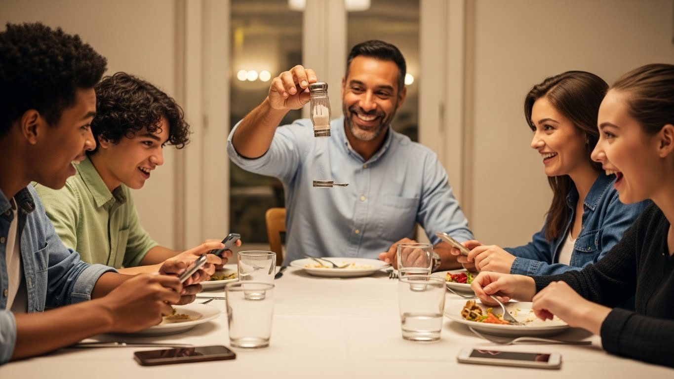 3. Dad Stops Teens From Texting At Dinner Table With Brilliant Salt Shaker Trick>