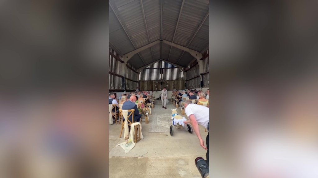Bunny the disabled sheep has always been a “daddy’s girl,” according to owner Jake Ratcliffe — so when he and his bride, Rosie, tied the knot a few months ago, there was no better fit for the role of ring bearer than their beloved fluffy ewe.