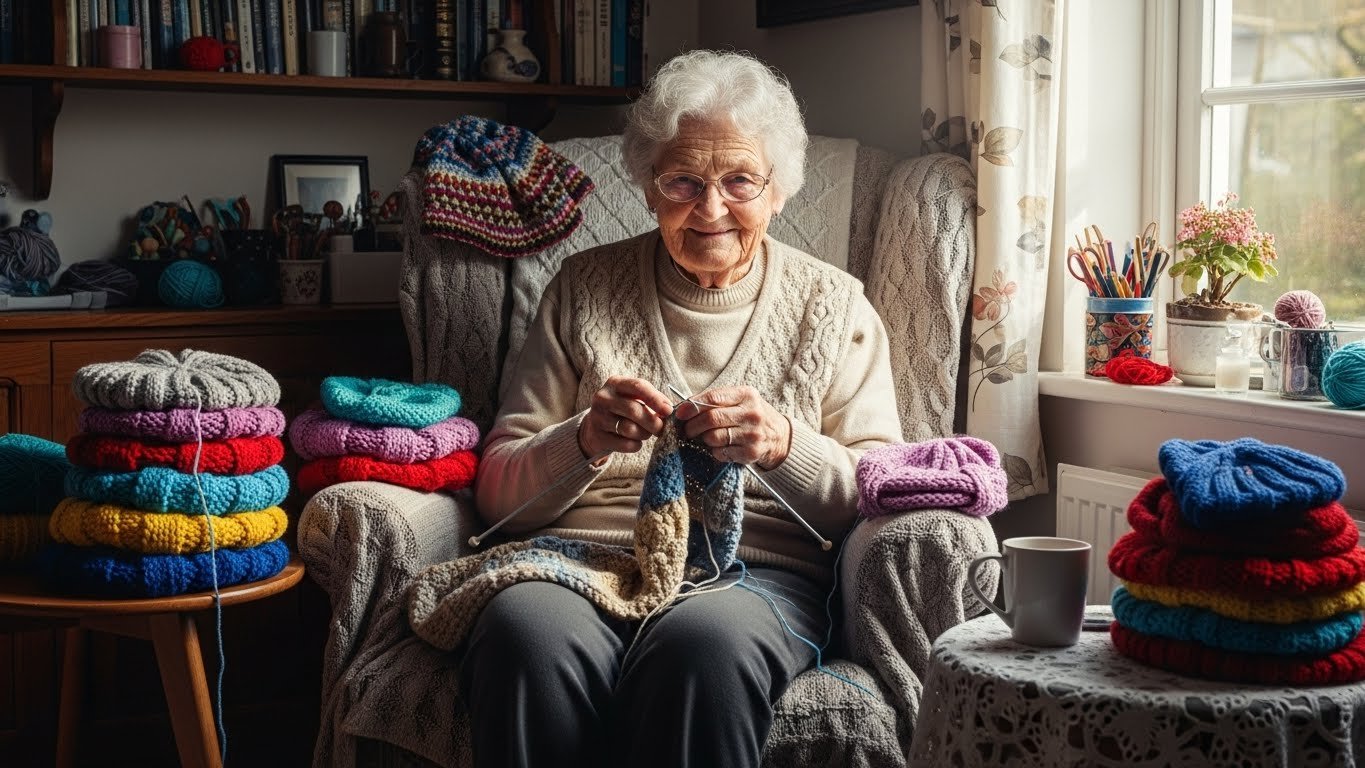 3. Elderly Woman Knits Hundreds Of Hats For Homeless – The Reason Why Is Beautiful>
