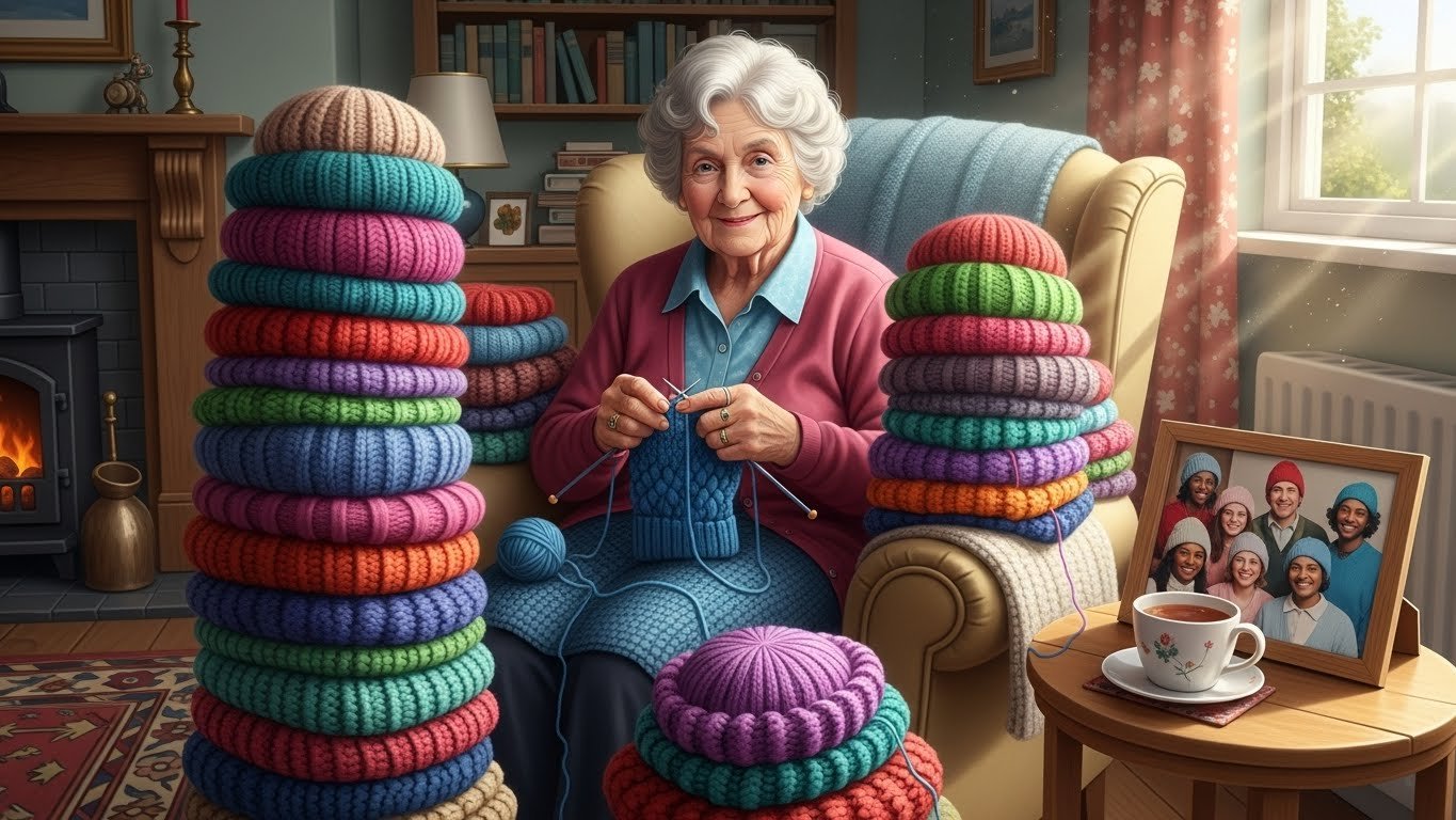 3. Elderly Woman Knits Hundreds Of Hats For Homeless – The Reason Why Is Beautiful>