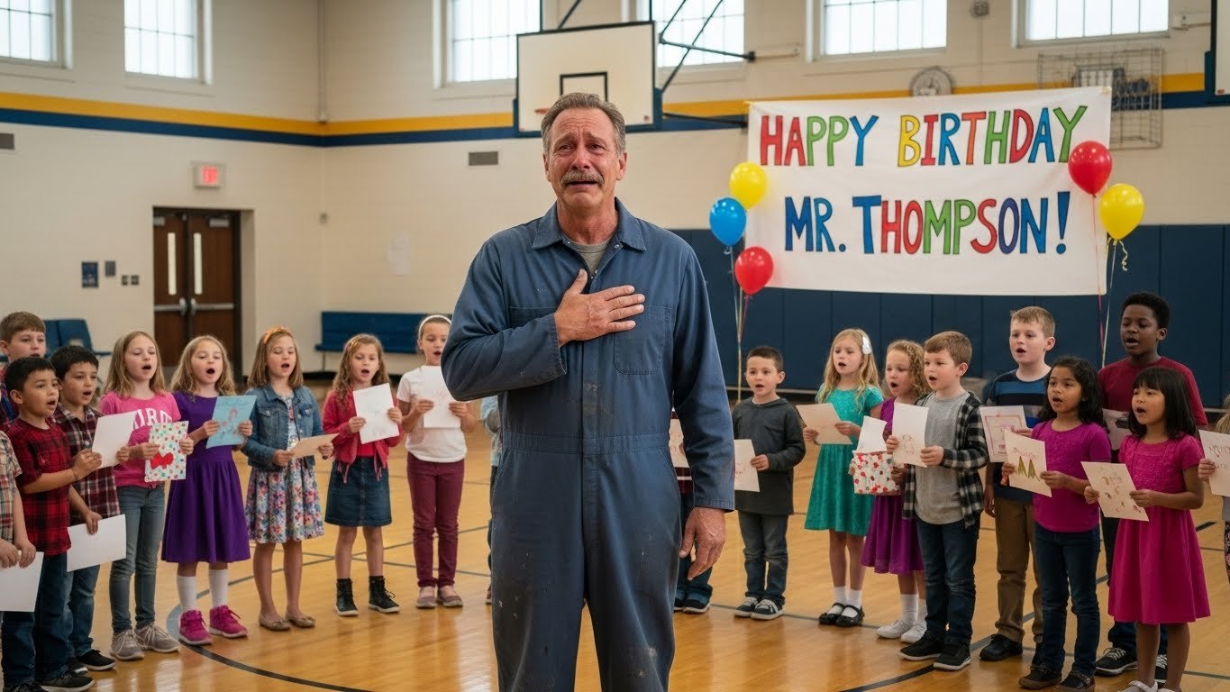 3. Elementary School Janitor Gets Surprise Of A Lifetime When Students Sing Happy Birthday>