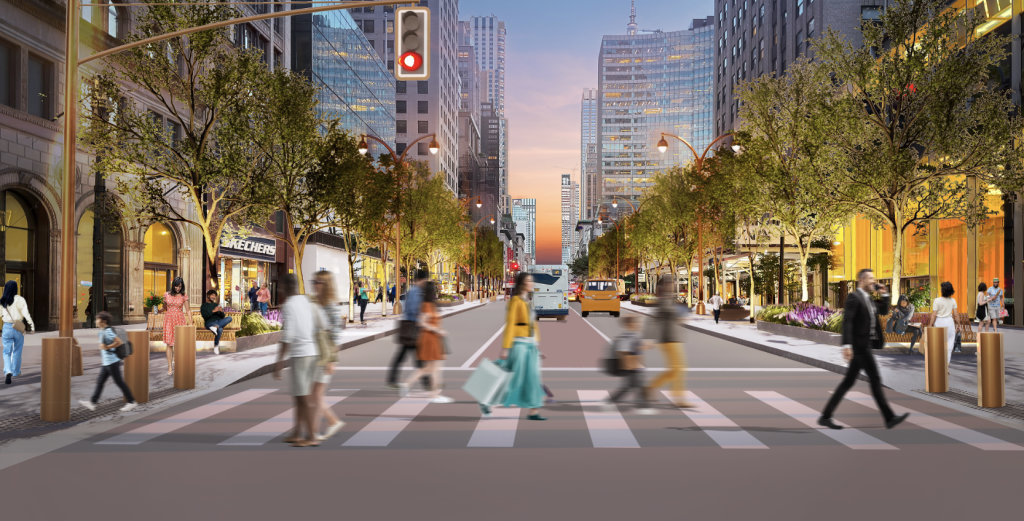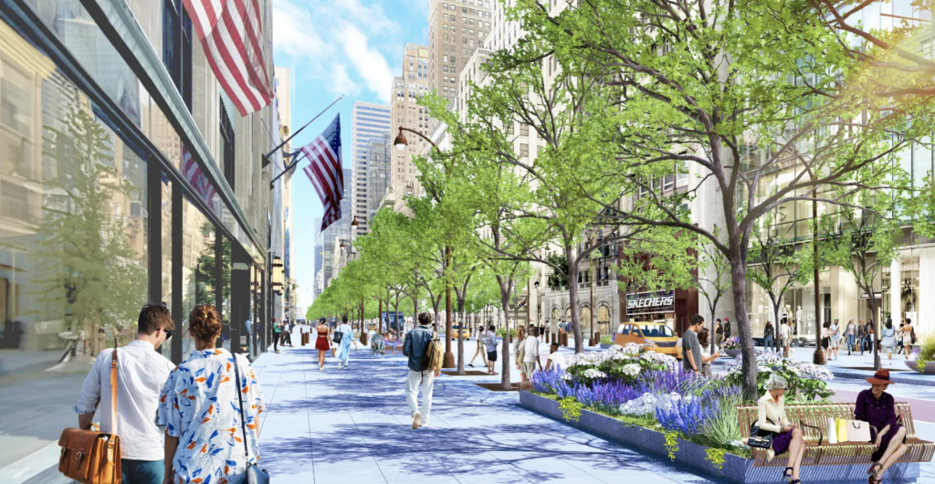 New York City’s famed Fifth Avenue runs along some of the most iconic sites in Manhattan: the Plaza Hotel, the Metropolitan Museum of Art, the Empire State Building, Rockefeller Center — the list goes on and on. And now, a stretch of the 6.2-mile thoroughfare between Bryant Park and Central Park will undergo a major redesign to make the already pedestrian-friendly street even more walkable.