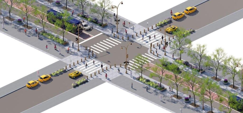 Renderings for the makeover, the first of its kind in the avenue’s 200-year history, were unveiled earlier this month. Proposed improvements include widening sidewalks by nearly 50%, shortening crosswalks and adding lights for increased safety, reducing the number of traffic lanes from five to three, and installing more greenery. The schematic designs are expected to be completed by summer 2025.