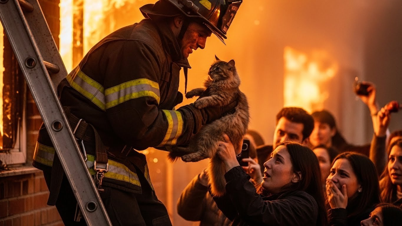 3. Firefighter Saves Cat From Burning Building – What The Cat Does Next Leaves Him Speechless>
