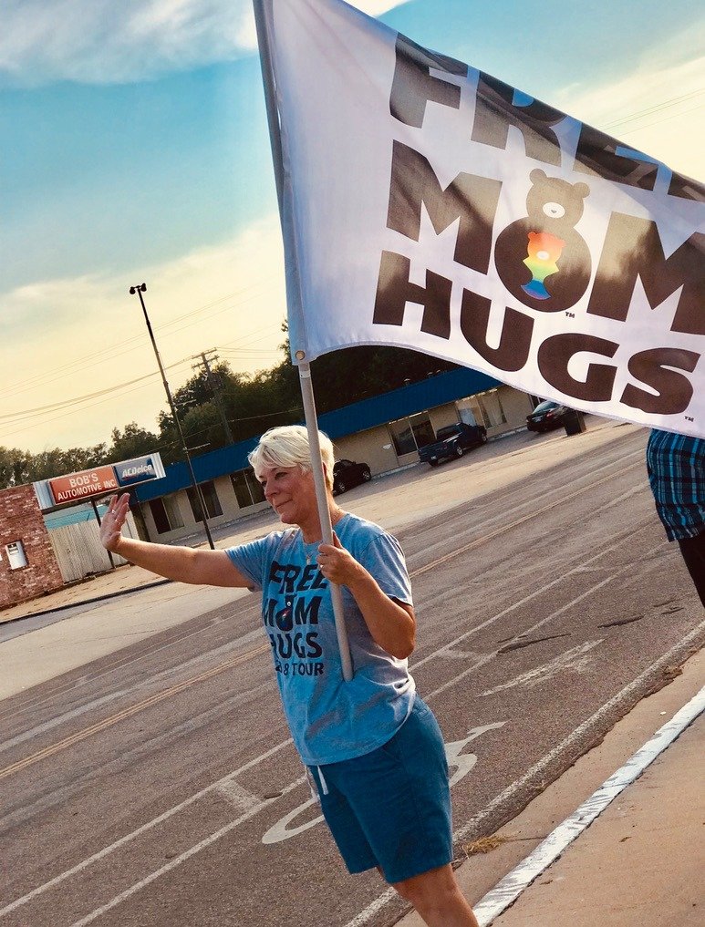 Cunningham started small — she cited Oklahoma City’s 2014 Pride parade as her “first intentional interaction with the gay community.” She attended the event again the following year and wore a homemade button reading “Free Mom Hugs,” sowing the seeds of what would become a wide-reaching organization of the same name.