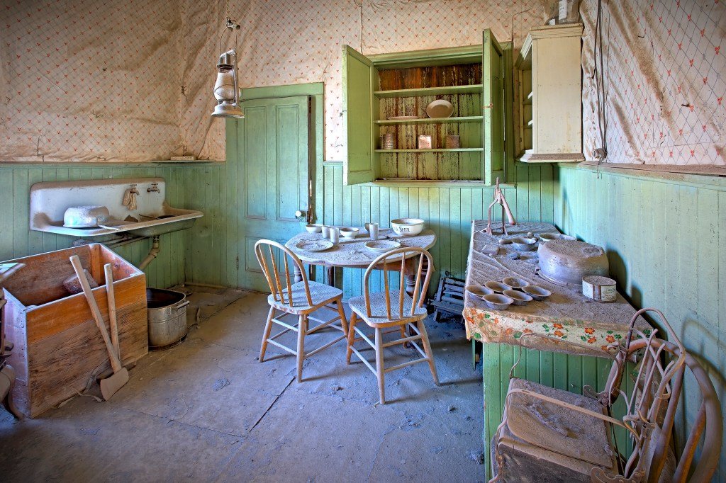 About 110 of the 2,000 buildings erected in its heyday — which included a post office, schools, stores, churches, and several dozen saloons — are still standing. The interiors of the structures remain as they were, and in some cases are stocked with goods and furniture.
