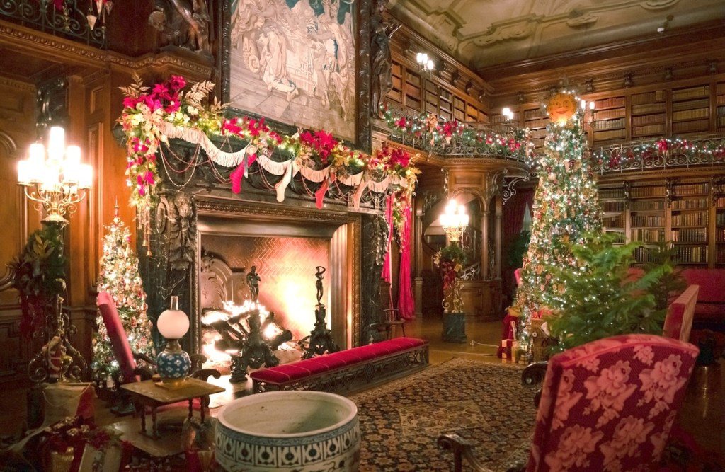 Per the estate: “The first Christmas at Biltmore House in 1895 was a joyous occasion. Biltmore Estate records show that George Vanderbilt paid close attention to every detail to ensure a memorable holiday experience for his guests. Requests were placed for a large Christmas tree in the banquet hall; mistletoe and holly were gathered, and handmade garlands were hung throughout the house.”