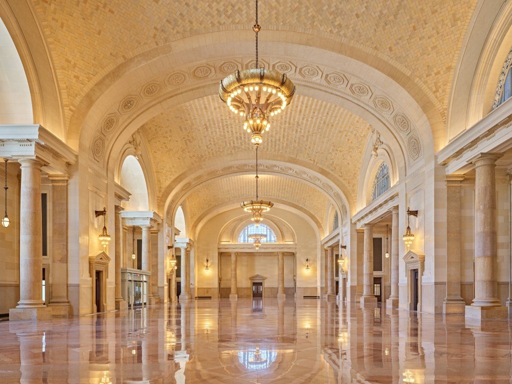 When Kansas City Union Station originally opened its doors in 1914, it was a magnificent testament to the Missouri city’s position as an economic powerhouse, comprising 10 levels and 900 rooms — including an elaborately decorated Grand Hall with an ornate fresco-adorned ceiling and three 3,500-pound chandeliers.
