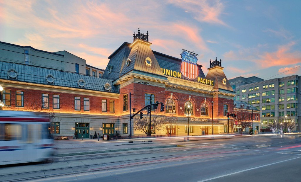 Roughly 525 miles west of Denver, the extravagant Asher Adams Hotel hosts guests at what was once Salt Lake City’s Union Pacific Depot. The structure, originally completed in 1909, is one of the city’s oldest, per the BBC, and served as a gateway between the Northwest and Southwestern U.S. Trains stopped passing through by the late 1980s, and though part of the space was converted into offices ahead of the 2002 Winter Olympics, the rest remained largely desolate.