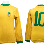 The long-sleeved shirt was one of two Pelé was given to wear for his final game representing Brazil, which amassed a packed stadium of cheering fans. He went with the short-sleeved option, and gifted the other to the team masseur, Abilio Jose de Silva (nicknamed “Knockout Jack,” or Nocaute Jack in Portuguese) in a show of gratitude for his work with the squad.