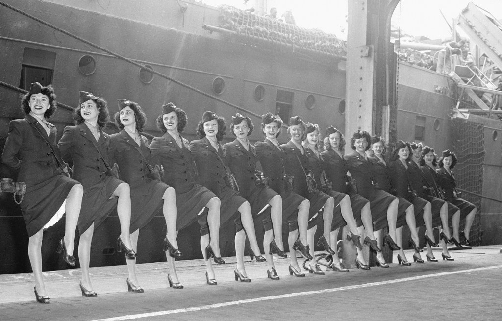 The Rockettes before boarding the ship that will take them to tour with the USO in 1945.