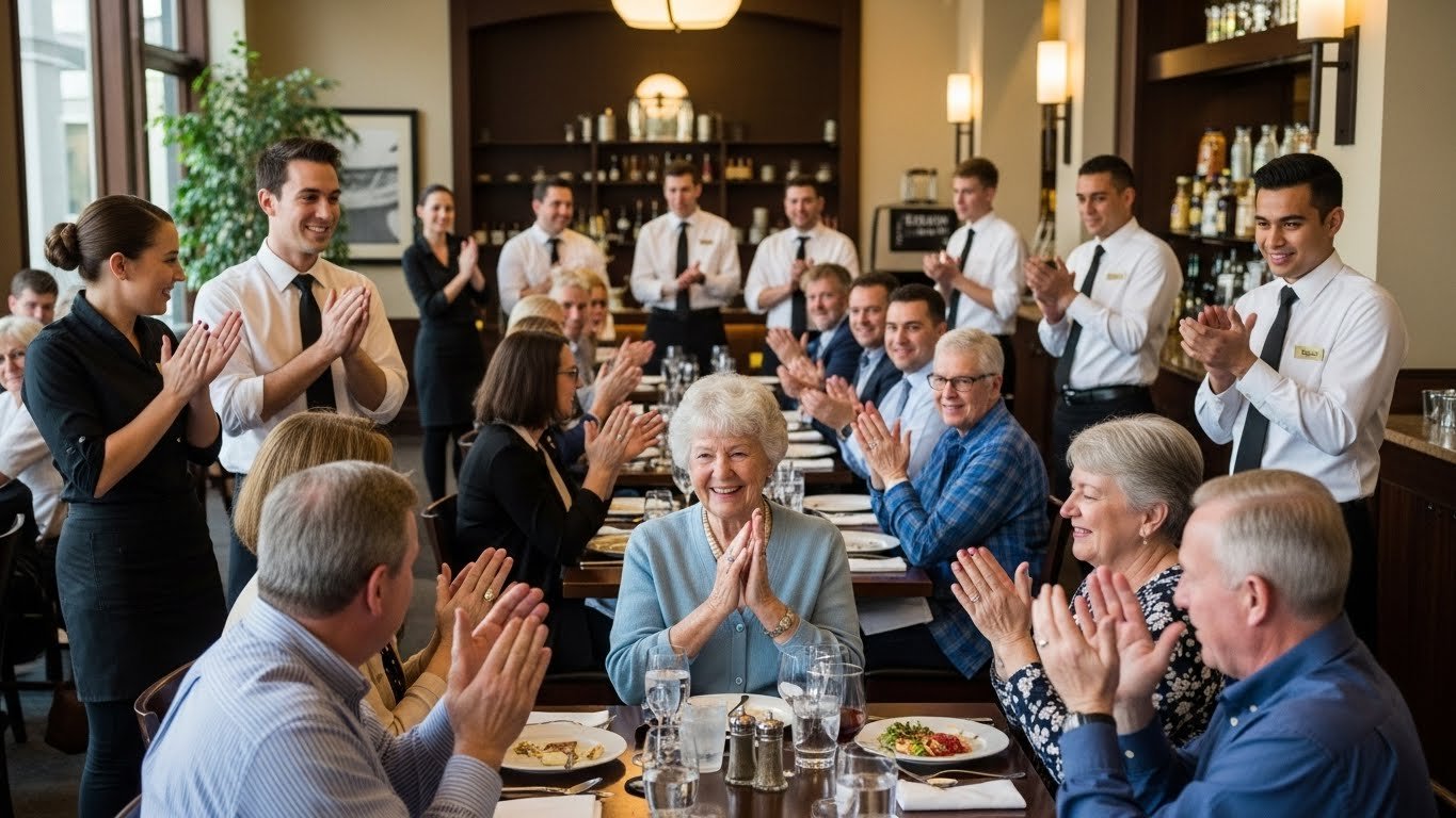 3. Server Notices Family Praying Before Meal – When She Joins Them The Restaurant Erupts In Applause>