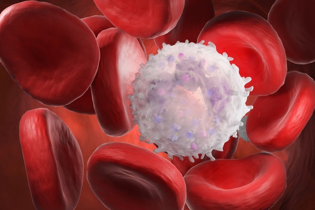 A digital rendering of red and white blood cells