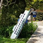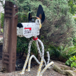 One of the newest additions is based on a popular video game. “Earlier this year, I moved in with an elderly friend to help him be able to stay in his home longer and to help me with expenses while I work on the book and do other writing,” Stoughton shared. “He’s a nonagenarian with a beautiful home on the waterfront in a lovely HOA. In the spirit of funky mailboxes, he decided on a crazy Super Mario Brothers theme, replete with an eight-car pile-up in the back.”